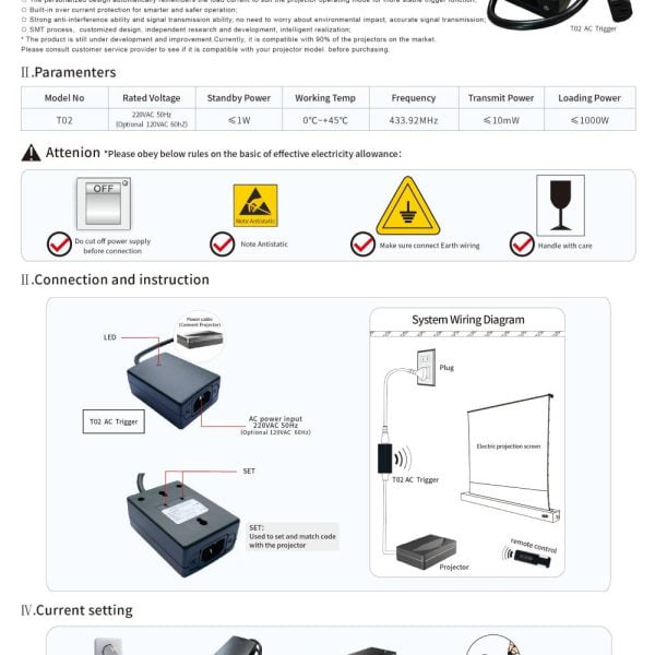 • T02 AC Wired Trigger Remote Control for Vividstorm Floor Rising/Drop Down Screen
