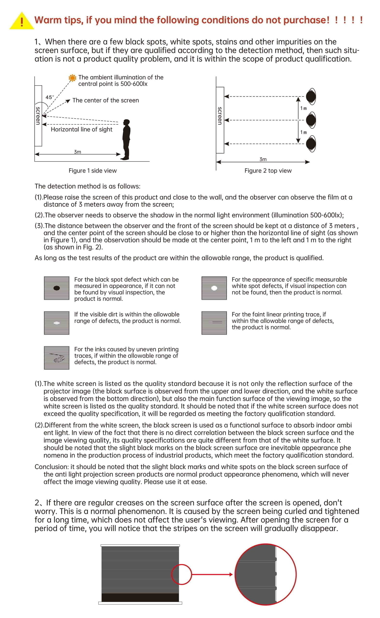 Altering the default black border beyond 10 cm may cause ripples or surface deformation on the screen fabric.
